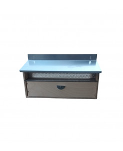 Cache-câbles pour ruche composé d'un cadre en bois de 25 mm d'épaisseur et d'un plateau en contreplaqué, collage phénolique de 15 mm, équipé d'un disque métallique 4 positions